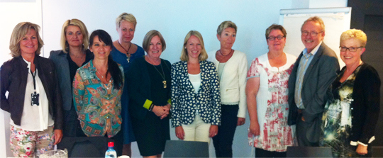Fra venstre: Merethe Foss Liverud, statens personaldirektør, Inger Lise Blyverket, fagsjef i Virke, Anne-Kari Bratten, administrerende direktør i Spekter, Anne-Cathrine Hjertaas, avdelingsdirektør i KS, Ann-Torill Benonisen, spesialrådgiver i NHO, arbeidsminister Anniken Huitfeldt, Peggy Hessen Følsvik, førstesekretær i LO, Jorunn Berland, leder i YS, Anders Folkestad, leder i Unio, Tove Storrødvann, generalsekretær i Akademikerne. (Foto:AD)