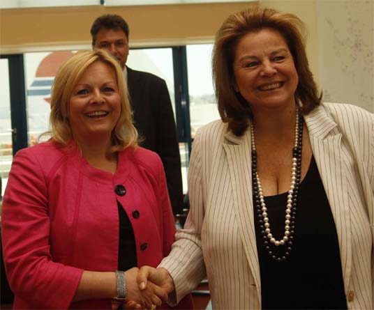 Statssekretær Rikke Lind og økonomi - og skipsfartsminister Louka Katseli.