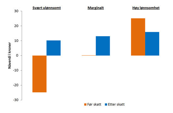 Figur 1: Verdi av modellinvestering før og etter skatt.