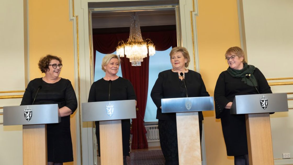 – I am very happy to form a non-socialist majority government, for the first time since 1985. The fact that that four women are now heading the coaltion is an expression of the strong position of women in Norwegian society, and that female leadership today comes as natural as male leadership once did. Women leaders take on all challenges, but I do believe female representation makes a difference in politics, with emphasis on equal rights and the situation for families, says Prime Minister Erna Solberg.