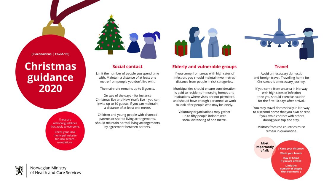 Based on advice issued by the Norwegian Directorate of Health and the Norwegian Institute of Public Health, the government has adopted the following measures for the Christmas holidays: