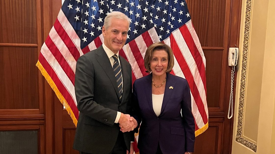 On Monday evening, Prime Minister Jonas Gahr Støre met the Speaker of the House, Democrat Nancy Pelosi, and the Senate Minority Leader, Republican Mitch McConnell.