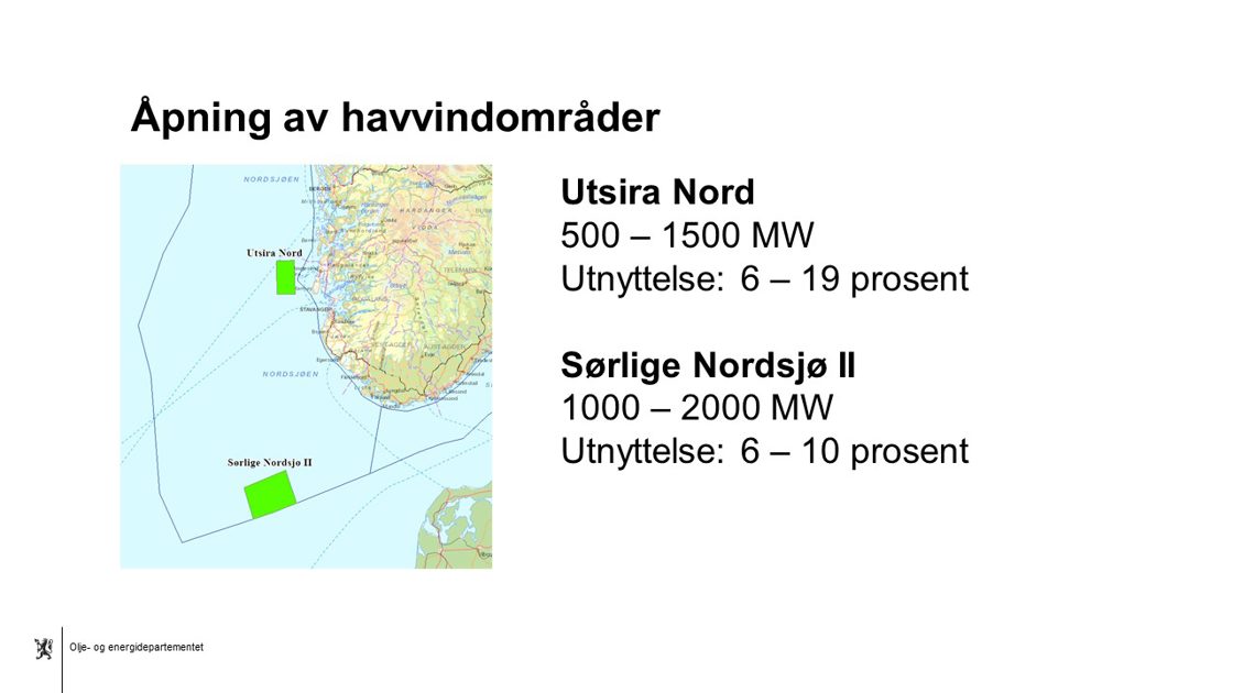 The Ministry of Petroleum and Energy proposes opening of area for offshore wind