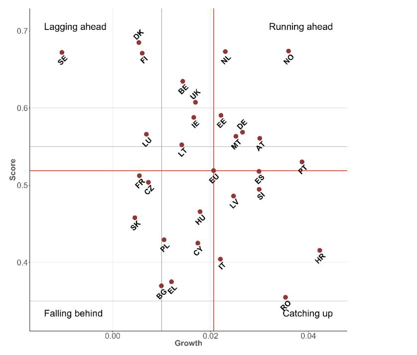 Figur 6.2 Figure 4.9 Norway’s ranking in the DESI index for 2016, given overall score and growth rate.