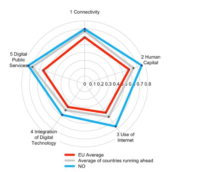 Figur 6.1 Figure 4.8 Norway’s ranking along the five dimensions in the DESI index for 2016.