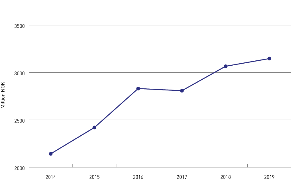 In 2019, grant allocations by the Research Council of Norway under the priority area ‘climate, the environment and clean energy’ totalled NOK 3.1 billion. This corresponded to 30.4 % of the NOK 10.2 billion in grant allocations by the Research Council, and was 47 % higher than in 2014. The funding allocated in 2019 was mainly for projects on clean energy and low-emission solutions, the bioeconomy and climate research. In recent years, the number of projects focusing on the circular economy and low-emission solutions has been rising.