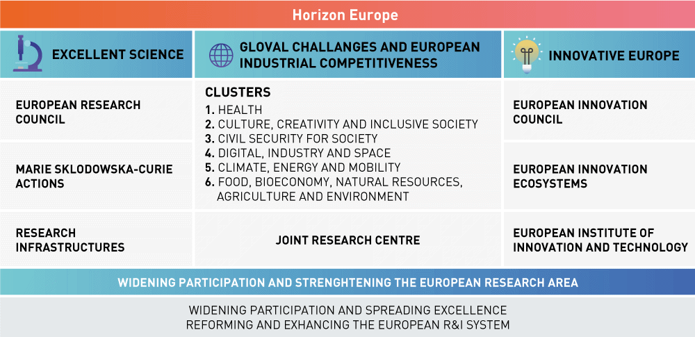 Figure 6.2 Overview of Horizon Europe, the EU’s ninth Research and Innovation Framework Programme.