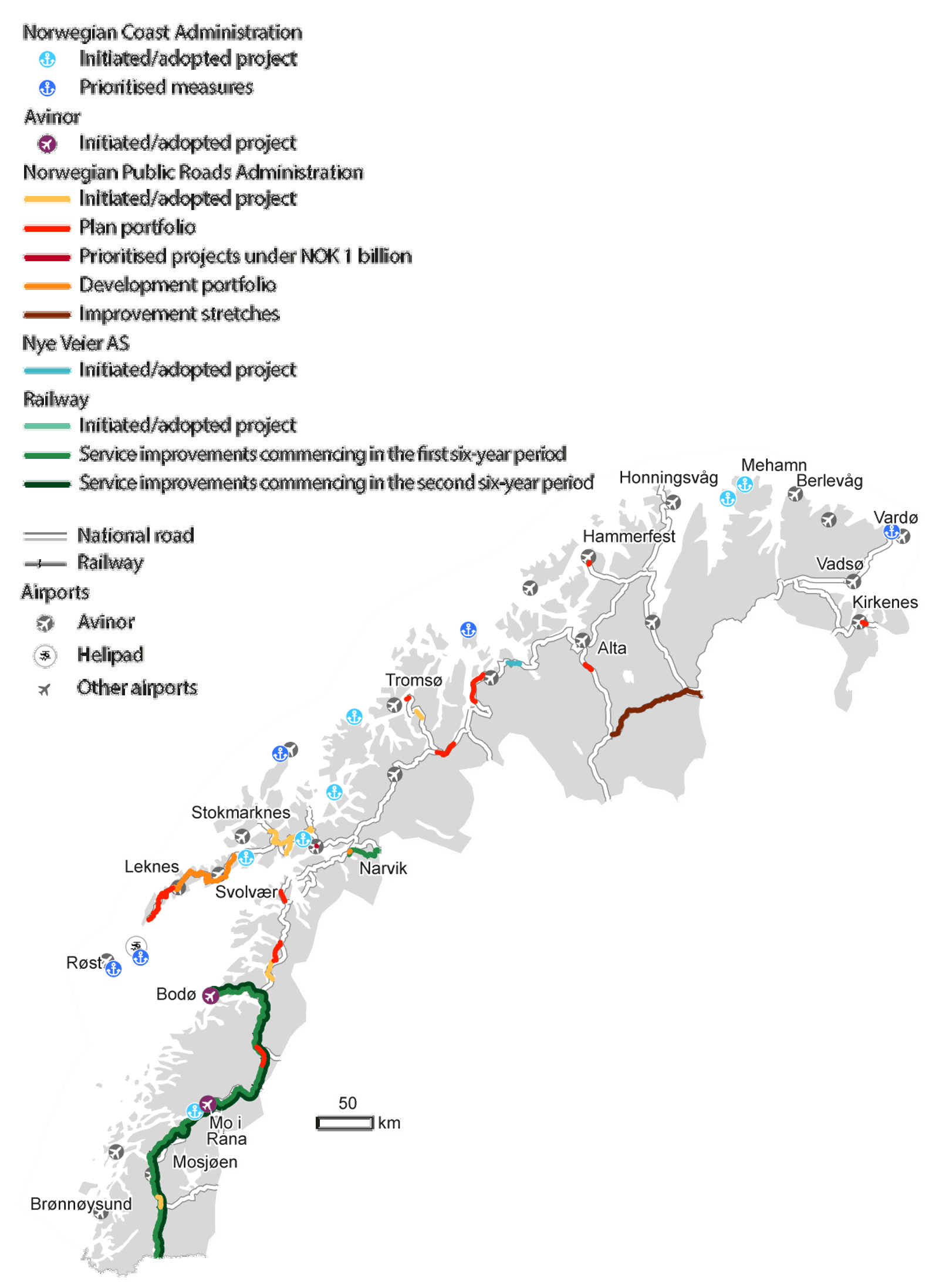Figure 5.1 Projects for all modes of transportation in Northern Norway