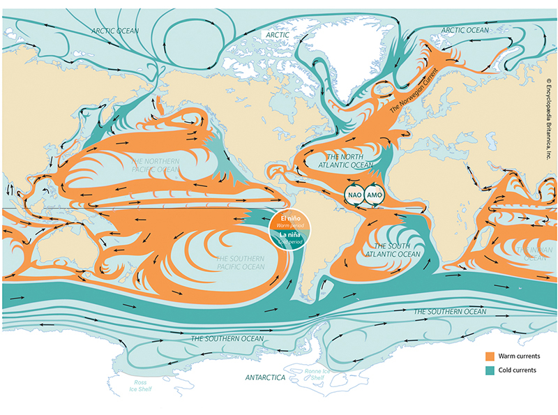 Figure 4.1 Global ocean currents. Norwegian waters form part of a continuous ocean and circulatory system.