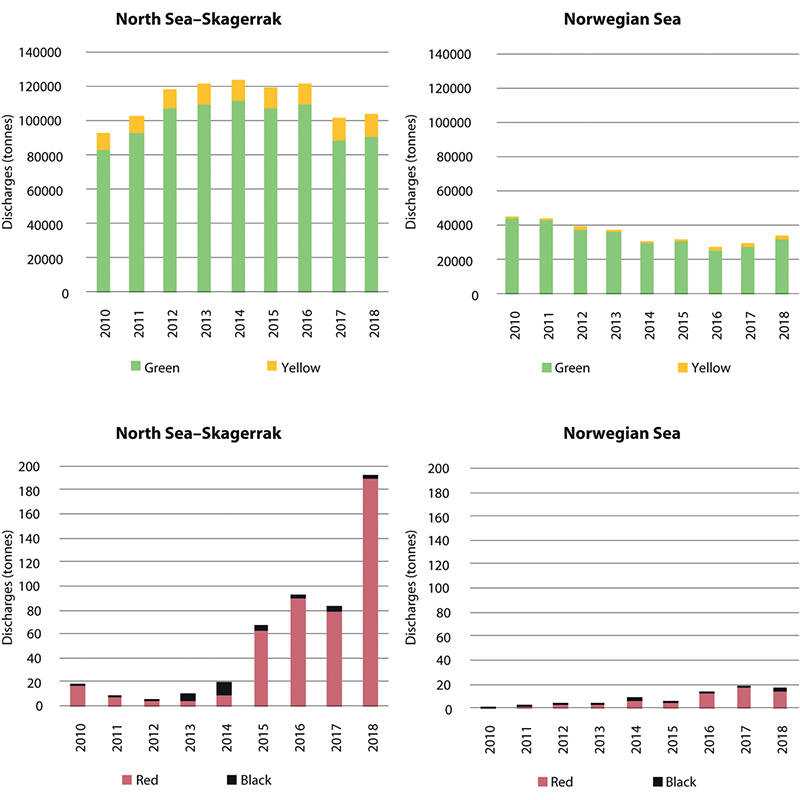 In the North Sea–Skagerrak area, total catches of the most important species were stable in the period 2010–2017. The main species are mackerel, herring, sandeels, Norway pout and shrimps. Mackerel catches declined from 129 068 tonnes in 2010 to 51 910 tonnes in 2017. Norway pout catches also declined (from 65 634 tonnes to 21 357 tonnes) while there was an increase in the landed volume of herring and sandeels.