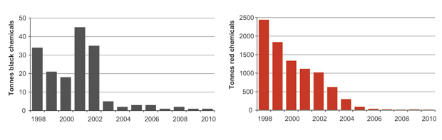 Figur 2.13 Development in discharges of black and red chemicals1.