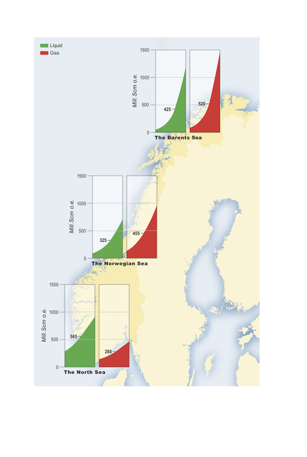 There is great uncertainty associated with these estimates. If we use the figures in the lower or upper parts of this range of uncertainty, we have so far produced about 50 and 30 per cent respectively, of the total recoverable resources. This does not take into account the resources in that part of the previously disputed area that lies to the west of the delimitation line with Russia, or in the waters around Jan Mayen.