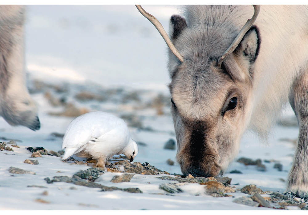 Figure 7.1 Svalbard reindeer and Svalbard rock ptarmigan grazing together.