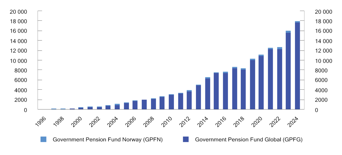 Government Pension Fund market value from 1996 to 2024. NOK billion