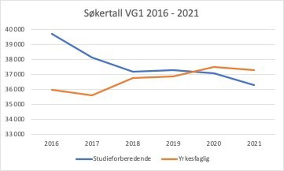 De siste årene har omtrent halvparten av elevene søkt seg til yrkesfag på Vg1. I år er andelen 51 prosent. Det er 1000 flere søkere til yrkesfag sammenliknet med studieforberedende.