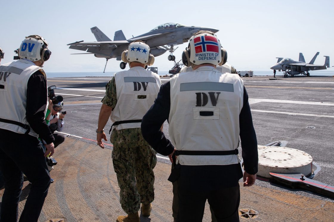 Mandag besøkte statsminister Jonas Gahr Støre og forsvarsministeren den amerikanske marinen. Sammen med marineminister Carlos del Toro og militærledelse i Norfolk, besøkte de hangarskipet USS Gerald R. Ford.