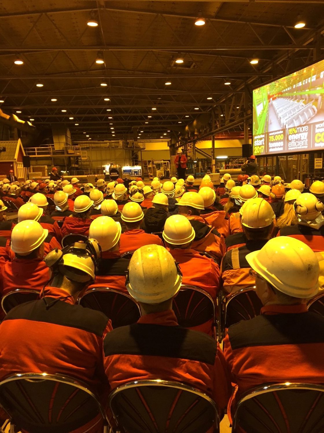 – Denne investeringen viser at det grønne skiftet er i gang. Jeg er glad for å være på plass på Karmøy og dele dette historiske øyeblikket med Hydro sine ansatte, sa statsminister Erna Solberg under et allmøte på Karmøy onsdag morgen.