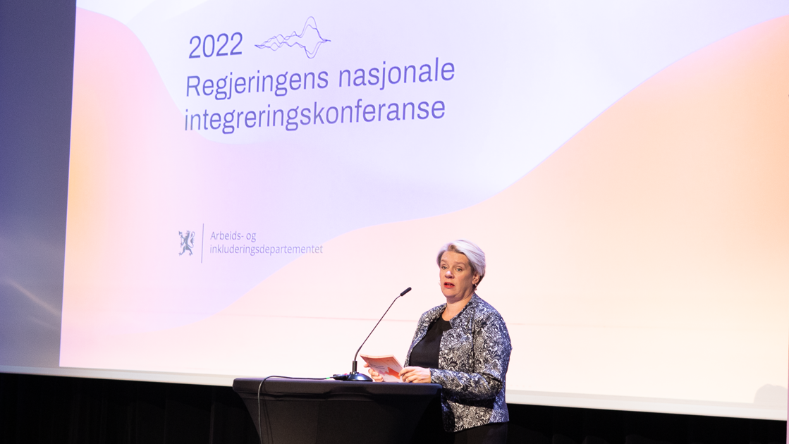 – Vi må være med å skape en sterk tilknytning og tillit til hverandre. Integrering går begge veier, sier arbeids- og inkluderingsminister Marte Mjøs Persen som invitererte til konferanse og dialog om integrering.
