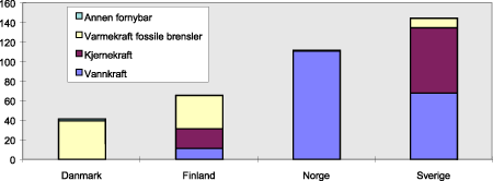 Kraftforsyningen i Nord-Europa og særlig i Norden er svært heterogen, se figur 8.1. Norge med praktisk talt bare vannkraft og Danmark, hvor kraftproduksjonen i det alt vesentlige er basert på fossile brensler, utgjør ytterpunktene. Finland og Sverige har mer variert kraftforsyning med vannkraft, kjernekraft og varmekraft basert på fossile brensler. Produksjonskapasiteten i Sverige, som baseres på fossile brensler (oljekondensverk), er først og fremst en reservekapasitet. I år med normale nedbørs- og tilsigsforhold er den svenske kraftproduksjonen basert på fossile brensler beskjeden. I Danmark utgjør vindkraft i underkant av 5 prosent av den totale kraftproduksjonen. Tysklands kraftproduksjon er dominert av kull- og kjernekraft, mens Nederland i tillegg til kullkraft også har et betydelig innslag av gasskraft.