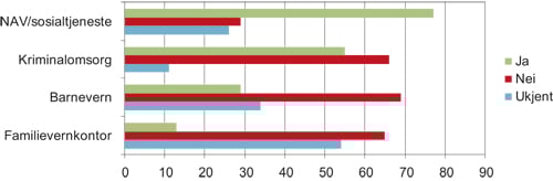 Da utvalget har begrenset informasjon om bistand fra hjelpeinstanser som NAV/sosialtjeneste, kriminalomsorg eller barnevernstjeneste, er det ikke mulig å si noe om kvalitet på slike tjenester.