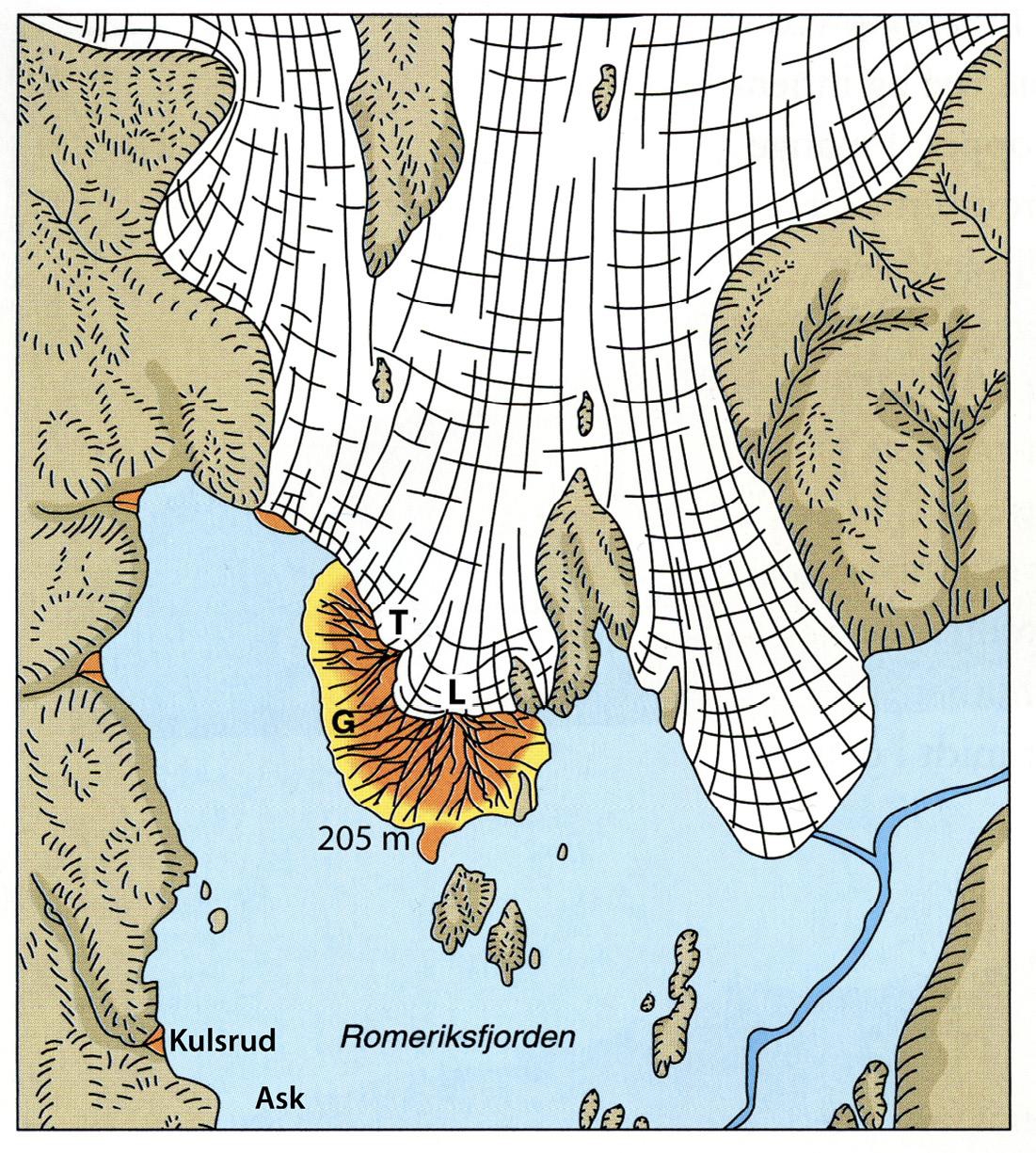 Ved den største isutbredelsen under siste istid, for ca. 22 000 14C-år siden, lå isbreen langt ut på sokkelen. Isen i indre Oslofjord kan ha vært 2000-2500 meter tykk på det meste, og isen presset landet ned. Etter hvert som innlandsisen begynte å smelte hevet landet seg. Landhevningen var raskest i starten, 170 mm per år i Oslofjordområdet. Hastigheten avtok gradvis, og landhevningen er nå 2-3 mm per år (Bargel, 2005).
