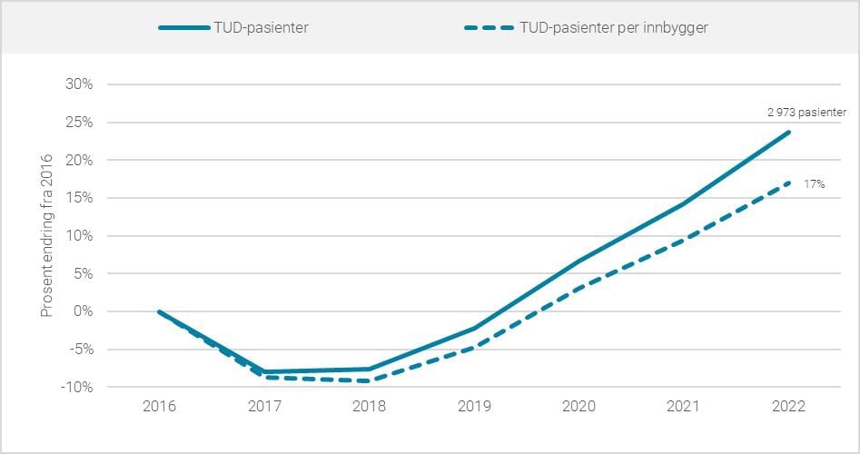 - Redusert varighet på TUD, med det resultat at noen pasienter blir tvangsinnlagt etter kort tid, mens andre klarer seg med frivillig helsehjelp.