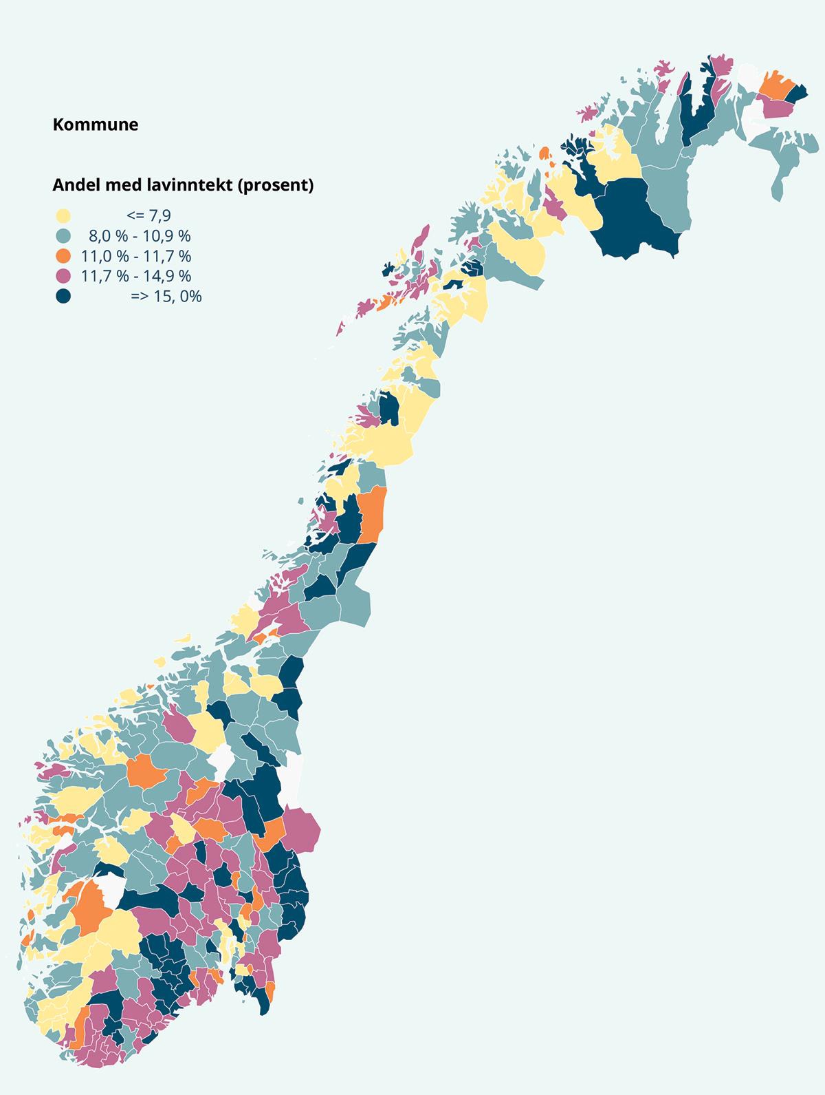 Norge har ingen offisiell fattigdomsgrense, men det vanligste er å bruke lavinntektsmålet definert ut fra hvorvidt husholdninger har inntekt under 60 prosent av medianinntekten. Det er også vanlig å ekskludere familier som kun har forbigående lavinntekt, ved å benytte indikatoren som viser vedvarende lavinntekt over tre år. For å kunne sammenligne inntektene til husholdninger av ulik størrelse og sammensetning brukes såkalte ekvivalensskalaer. Disse skal justere for forskjeller i de økonomiske behovene mellom voksne og barn og mellom små og store husholdninger.