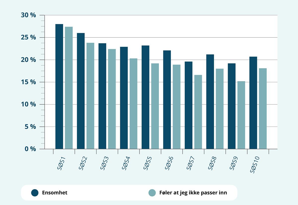 Note: Andel elever i 8.-10. klasse som oppgir at de er med i noen organisasjoner, klubber, lag eller foreninger. År 2022-2023. SØS1 betegner lavest sosioøkonomisk status og SØS10 betegner høyest sosioøkonomisk status. Sosioøkonomisk status er beregnet ut fra spørsmål om familiens materielle og sosiale ressurser.