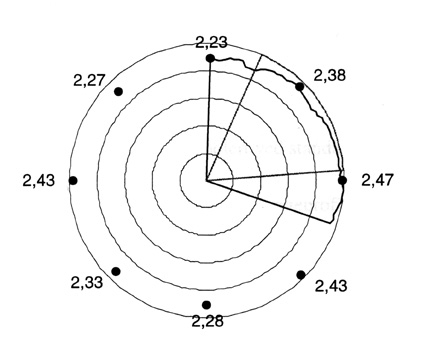 Figur 6.8 Inntrykningen observert over mannhullet. Bildet er rotert 90° mot klokka. Vogn 1
