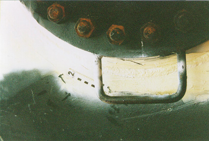 Figur 6.13 Mannhullet etter fjerning av lokket. Hvitfargen er rester etter NDT undersøkelsen. Vogn 1
