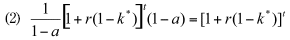 Det fremgår uten videre at (2) er uavhengig av a. Altså spiller ikke det ingen rolle for uttakstidspunktet om skatteutsettelsen (utbytteskatt, a > 0) erstattes med skattefritak (ingen utbytteskatt, a = 0). Derimot avhenger uttrykkene av k, k*,r og i .
