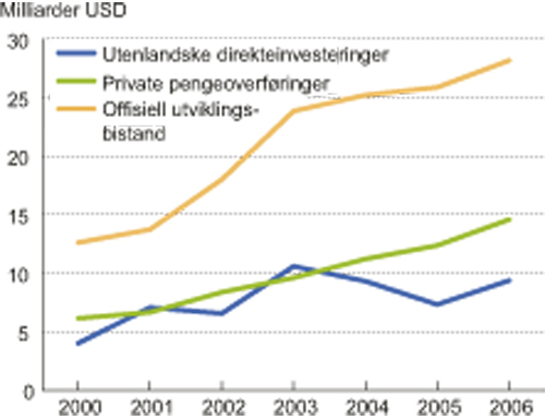 Figur 3.5 Finansstrømmer til MUL-land. 2000 – 2006. Milliarder USD