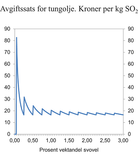 Svovelavgift,kr/liter (for hver påbegynt 0,25 pst. vektandel svovel) | 0,081 | 29 | 1970 |