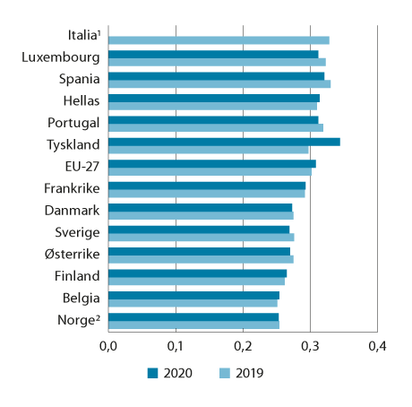 1 Eurostat har ikke publisert tall for Italia for 2020.