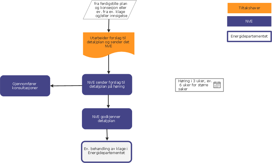 Etter høring og eventuell konsultasjon, godkjenner NVE detaljplanen med eventuelle vilkår for godkjenningen, for eksempel om avbøtende tiltak.