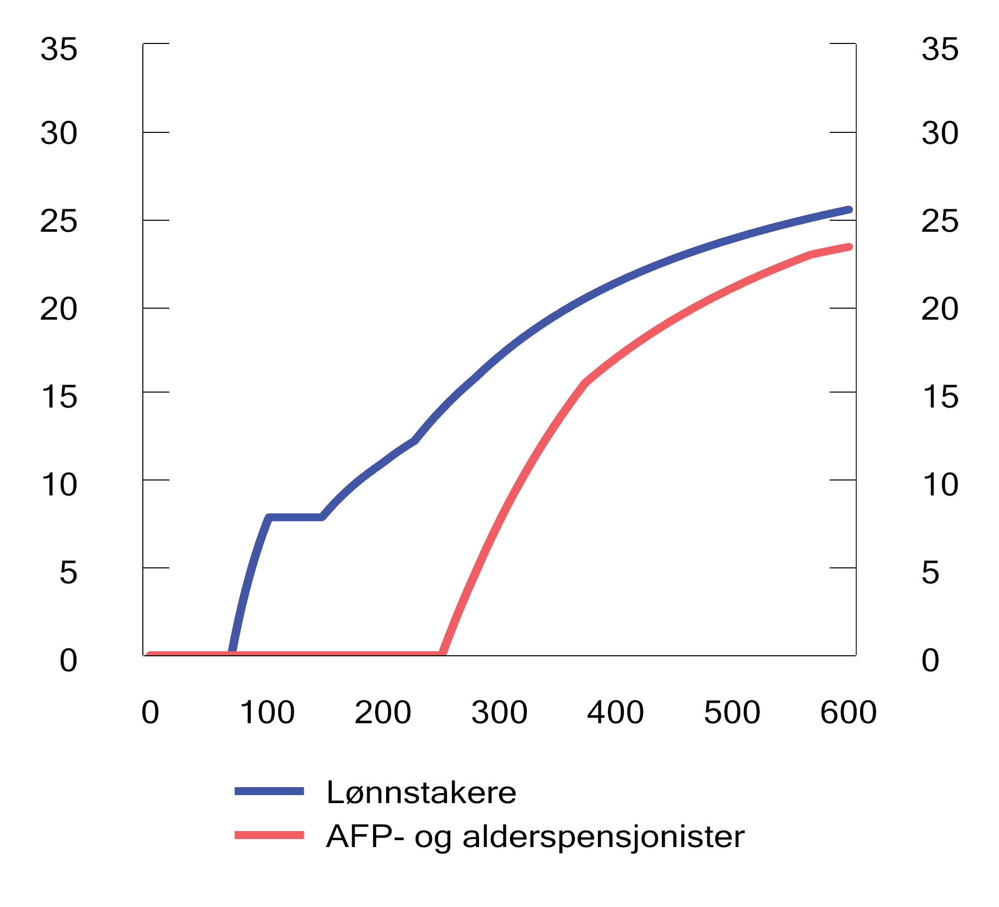 • Maksimalt skattefradrag for pensjonsinntekt og innslagspunktene for nedtrapping av fradraget økes med anslåtte pensjonsvekstrater.