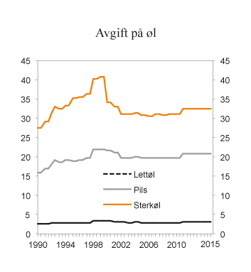 Avgifter utenfor statsbudsjettet utgjør vel 2 mrd. kroner over hele perioden. Noen ordninger er tatt inn på statsbudsjettet som sektoravgifter, blant annet konsesjonsavgifter fra vannkraftutbygging og fiskeriforskningsavgiften. Inntekten fra påslaget på nettariffen og omsetningsavgiften på landbruksprodukter er redusert de siste årene, mens eksportavgiften på fisk og fiskevarer har hatt en kraftig vekst. Nærings- og fiskeridepartementet vil sette ned eksportavgiften fra 1. januar 2016.