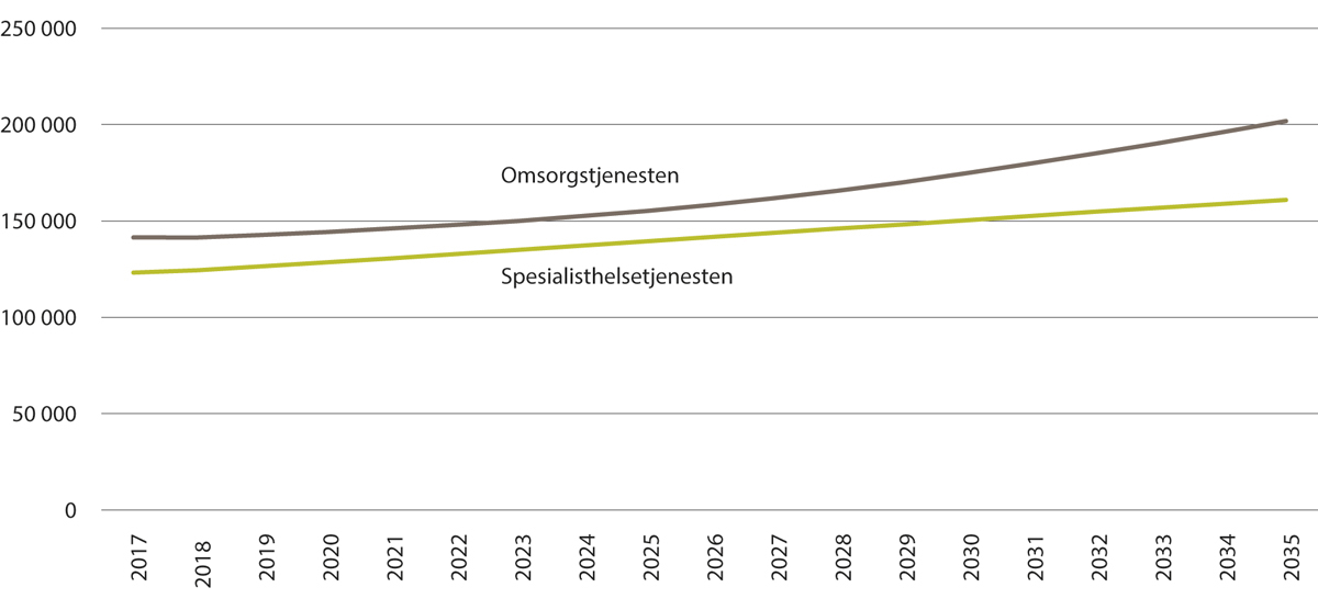 SSB (2019): Fremskrivninger av etterspørselen etter arbeidskraft i helse og omsorg mot 2060. SSB-rapport nr. 2019/12.
