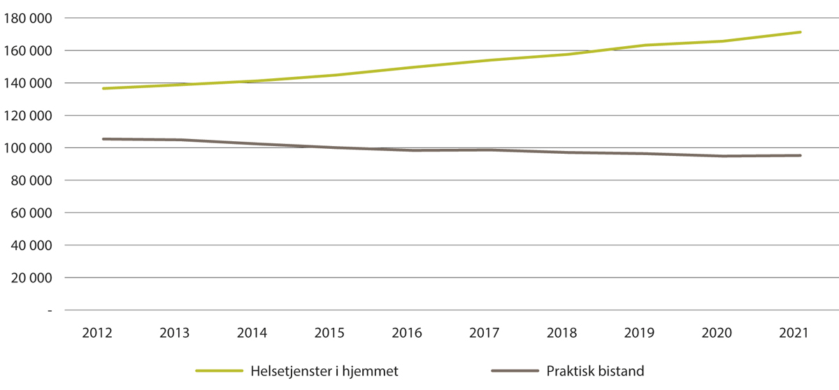 Helsetjeneste i hjemmet, praktisk bistand (praktisk assistanse, BPA og opplæring), omsorgslønn og avlastning.