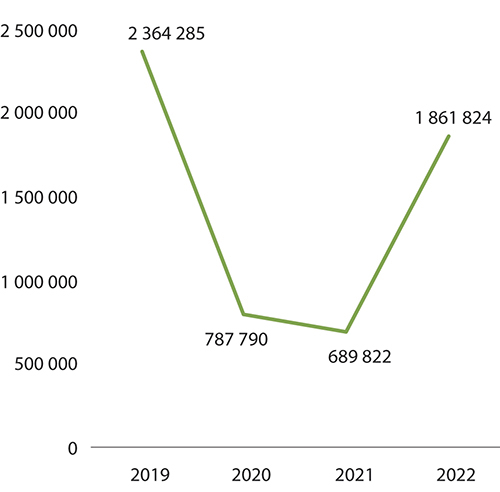 50–89 | Overføringer til andre | 3 184 392 | 3 551 290 | 3 499 878 | -1,4 |