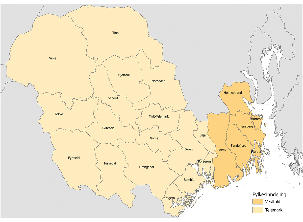 Departementet viser til at regjeringserklæringen varsler at regjeringen vil «oppløse tvangssammenslåtte fylkeskommuner og kommuner som sender søknad etter vedtak i henholdsvis fylkesting eller kommunestyre». På bakgrunn av de respektive fylkestingenes vedtak forut for Stortingets behandling av Prop. 84 S (2016–2017), og den mottatte søknaden om deling fra Vestfold og Telemark fylkeskommune, foreslår departementet at Vestfold og Telemark fylke deles i to enheter, Vestfold fylke og Telemark fylke, på en slik måte at fylkene dekker følgende geografiske områder: