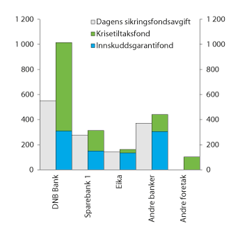 Bidraget til krisetiltaksfondet blir etter forordningsreglene lavt for disse og andre mindre banker. For eksempel vil den største av bankene i utvalget, Bank Norwegian, få et bidragskrav til krisetiltaksfondet på om lag 1 mill. kroner, mot et bidragskrav på om lag 33 mill. kroner til innskuddsgarantifondet.