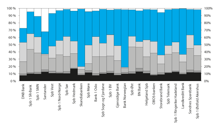 Kapitalen i Bankenes sikringsfond er mindre enn garanterte innskudd i hver av de største bankene, se figur 10.2. Fondskapitalen utgjorde ved utgangen av 2016 vel 8 pst. av garanterte innskudd i DNB Bank, og mellom 60 og 90 pst. av garanterte innskudd i hver av de største sparebankene. De garanterte innskuddene i Skandiabanken og Santander Consumer Bank overstiger også fondskapitalen.