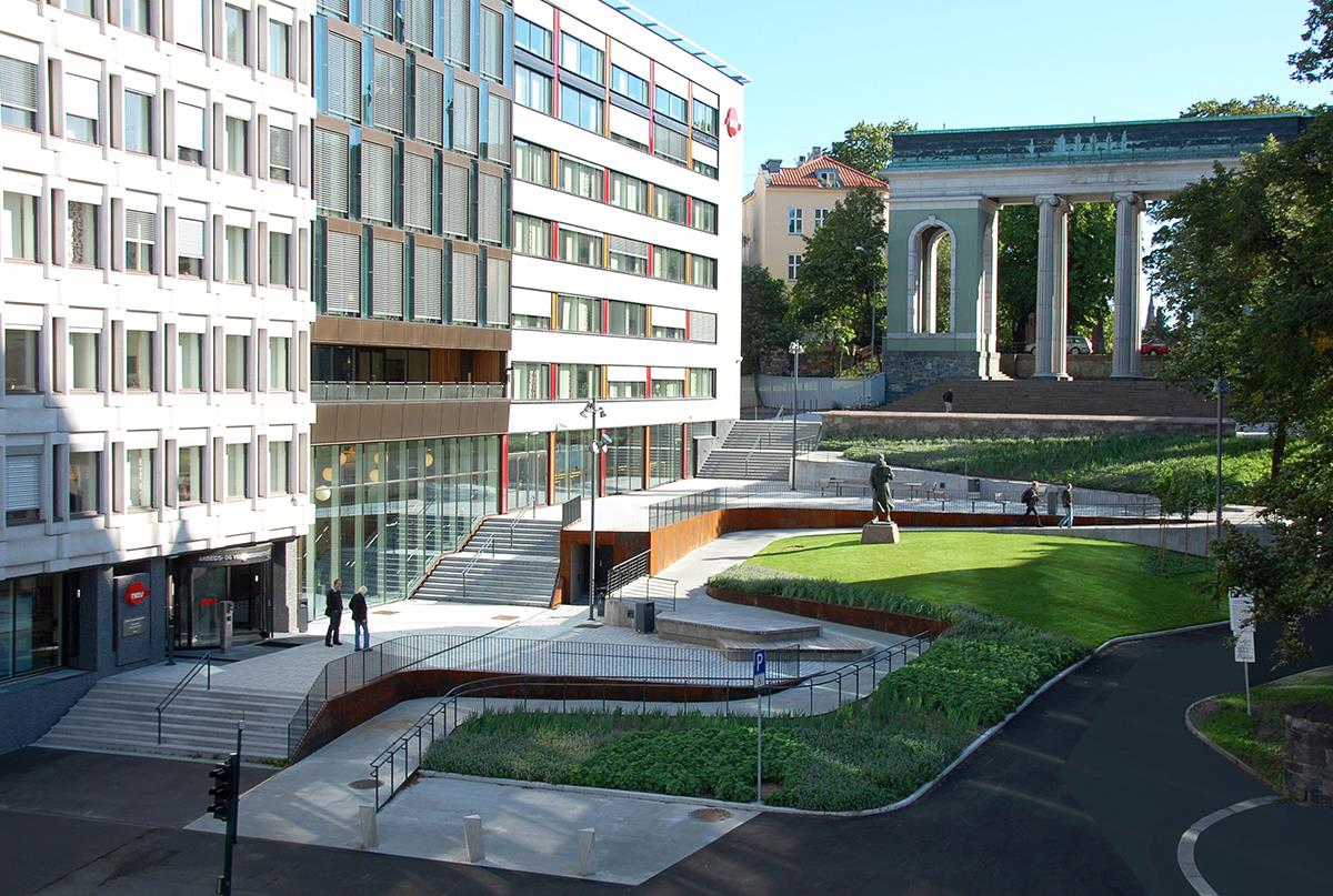 Reguleringsplanen omfatta eit større bygg, friområdet som utgjer plassen, og noko tilgrensande gateareal. Universell utforming av friområdet er sikra i reguleringsplanen gjennom denne føresegna: