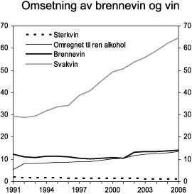 | Brennevinsbaserte drikkevarer over 0,7 vol.pst., kr/vol.pst. og liter | 5,74 | 5,89 | 2,6 |
