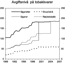 | Sigarer, kr/100 gram | 187 | 192 | 2,7 |