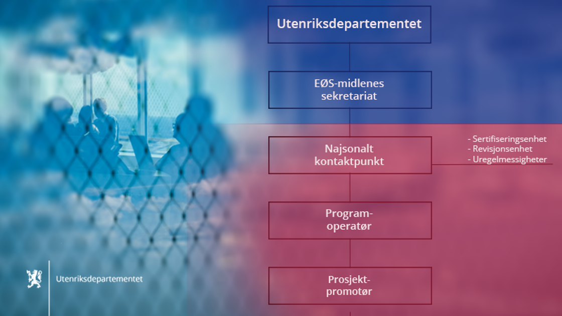 Kontroll- og forvaltningsregimet for EØS-midlene er basert på Utenriksdepartementets nulltoleranse mot korrupsjon. Ansvar og forpliktelser er fordelt på de ulike nivåene og enhetene som deltar i gjennomføringen av programmene våre.
