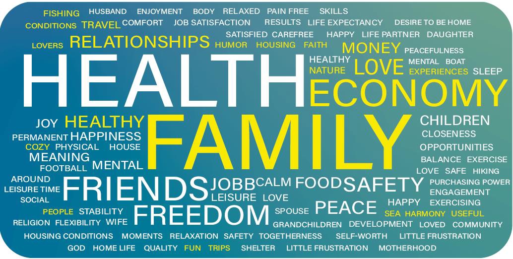 Figure 4. Word cloud with words most often mentioned by people when asked what a good life is for them