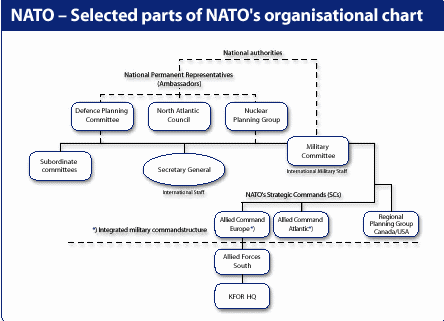 NATO’s 19 member states are represented on the North Atlantic Council which is the Alliance’s highest decision-making authority. Commander KFOR is subordinated to the Commander-in-Chief Southern Europe (CINCSOUTH), which again is subordinated to the Supreme Allied Commander Europe (SACEUR). Norway’s responsibility as Lead Nation is essentially limited to ensuring that Commander KFOR is able to carry out his demanding task in the best way possible.