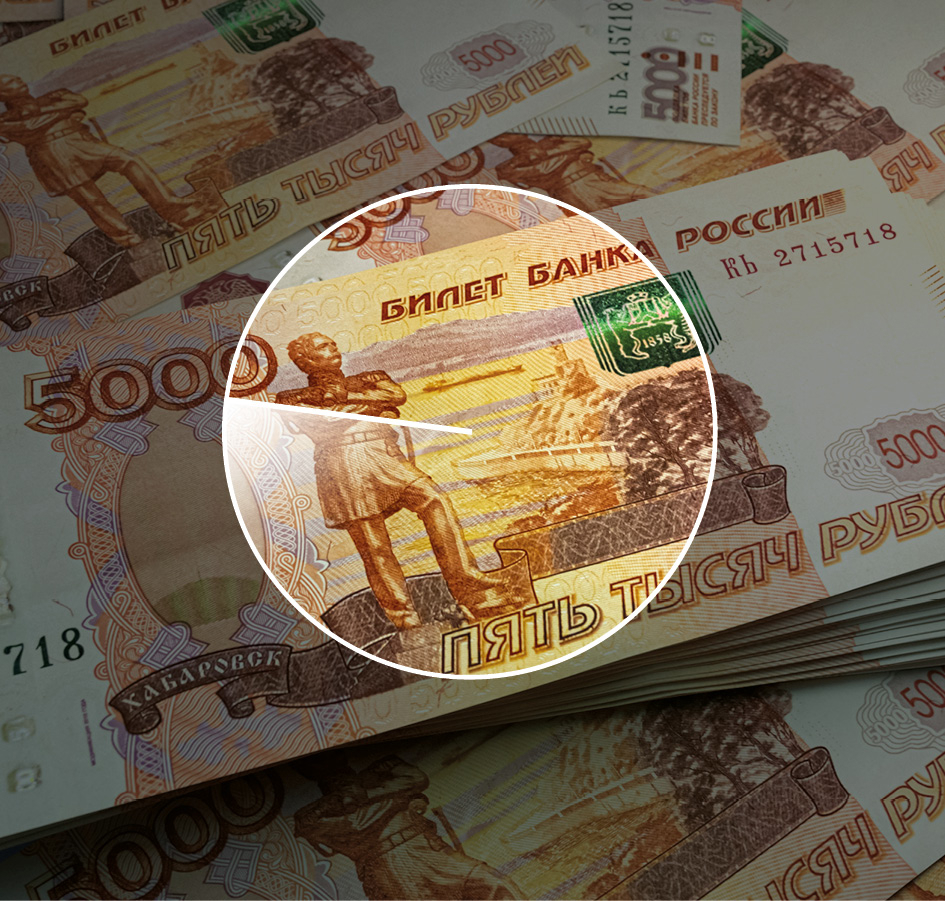 Money of Russia. Russian ruble bills. RUB banknotes. 5000 rubles. Business, finance, news background.